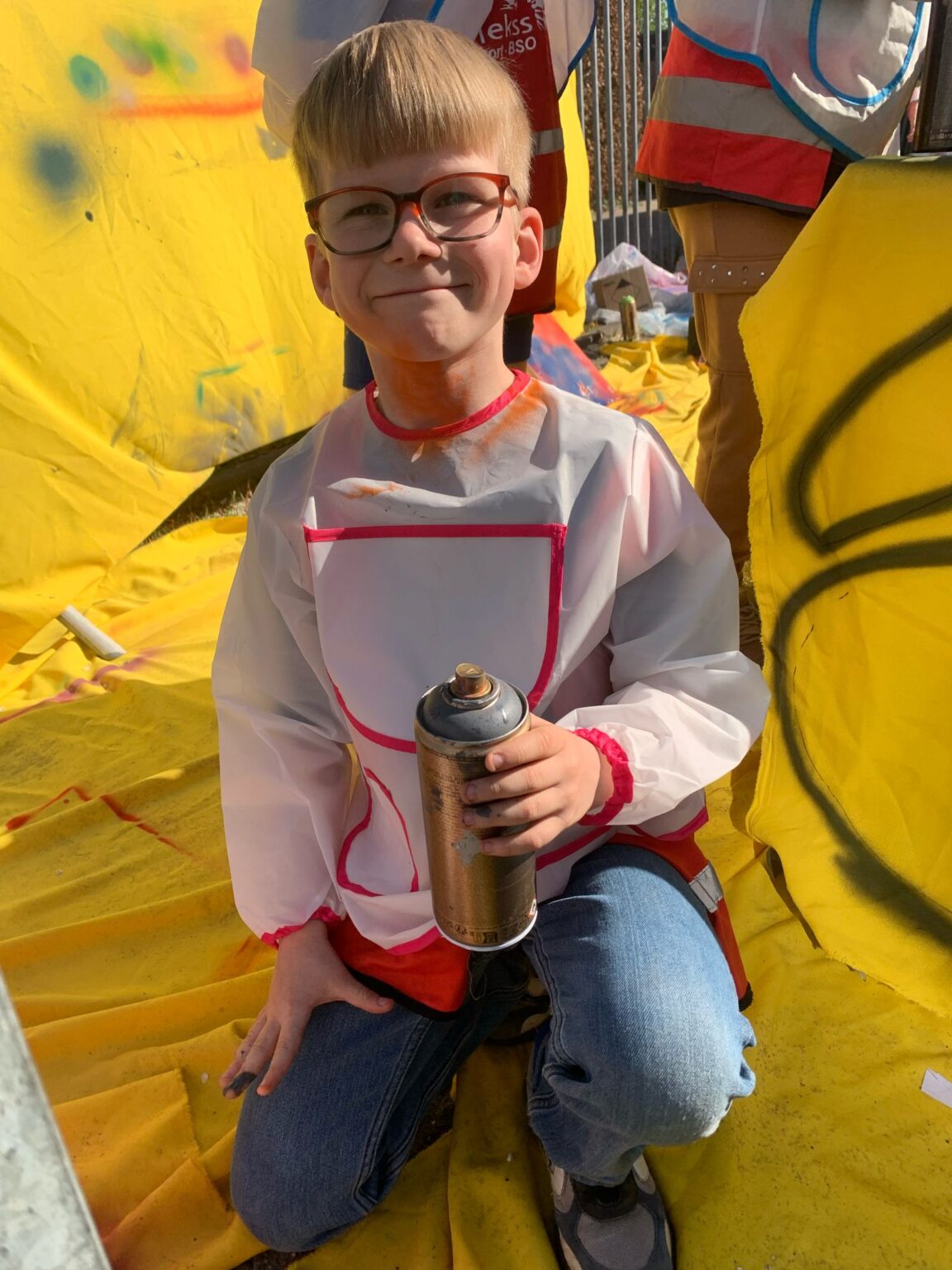 We gingen namelijk graffiti spuiten! 🎨 Iedereen kreeg een eigen plaat en kon z’n eigen kunstwerk maken. De kinderen vonden het superleuk en de resultaten waren echt geweldig mooi!