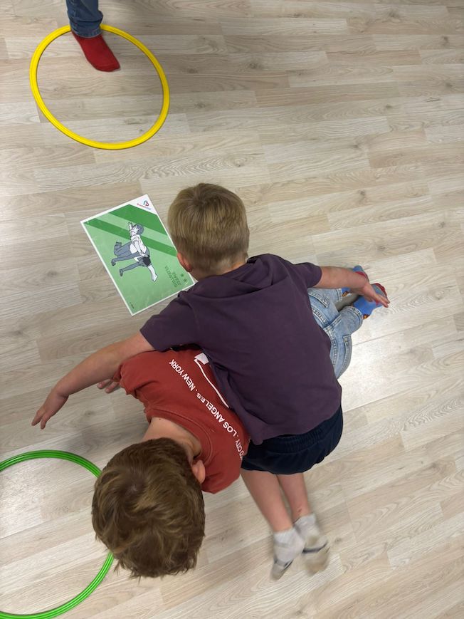 . Natuurlijk wilde wij wel samen bewegen! Dus hebben we samen de hoepeldans gespeeld en acrogym op de mat gedaan
