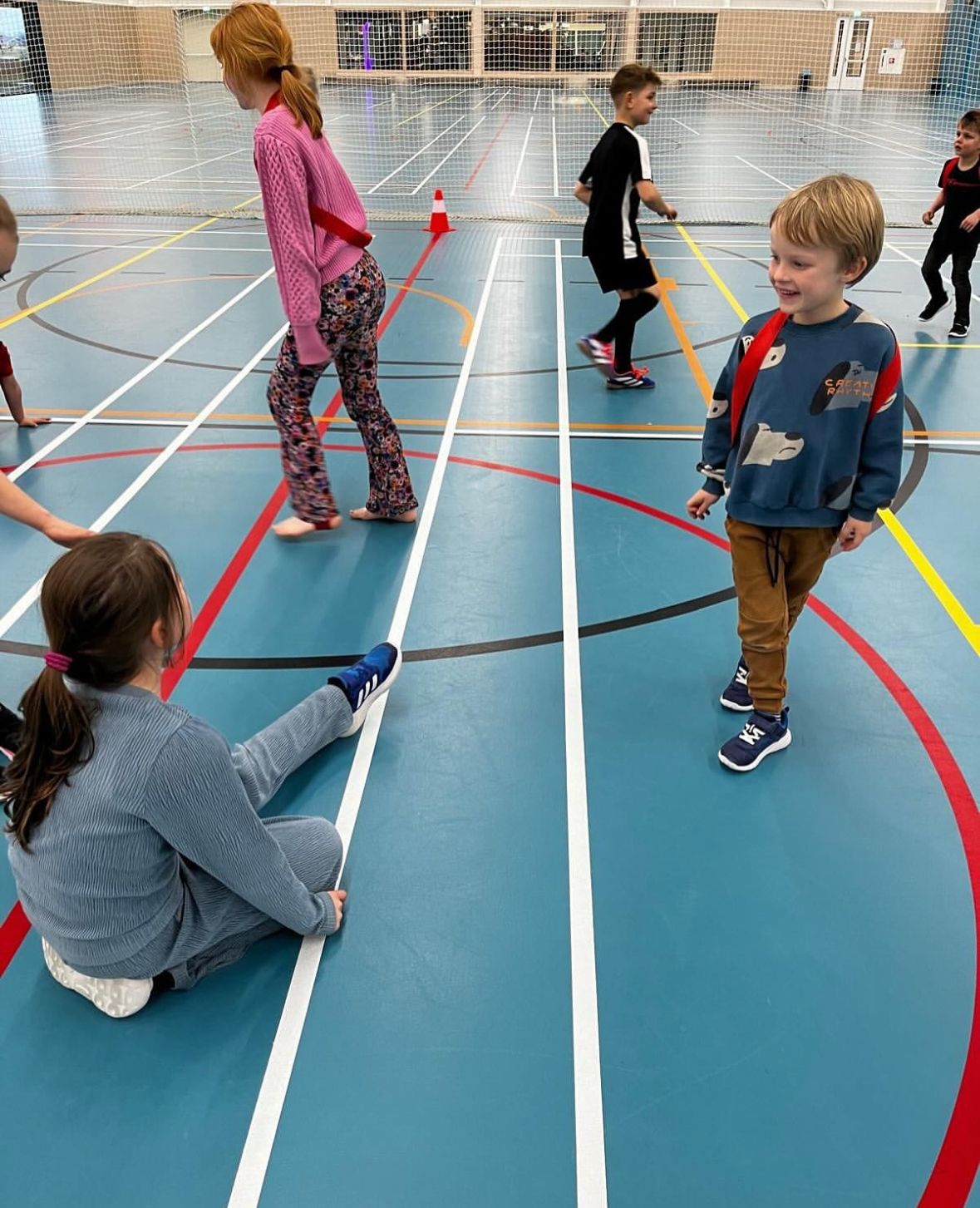 Hier hebben we pylon trefbal gespeeld, 2 teams die strijden in een trefbal vorm voor de overwinning. Een team heeft gewonnen wanneer alle pylonen van de kast af gegooid zijn!