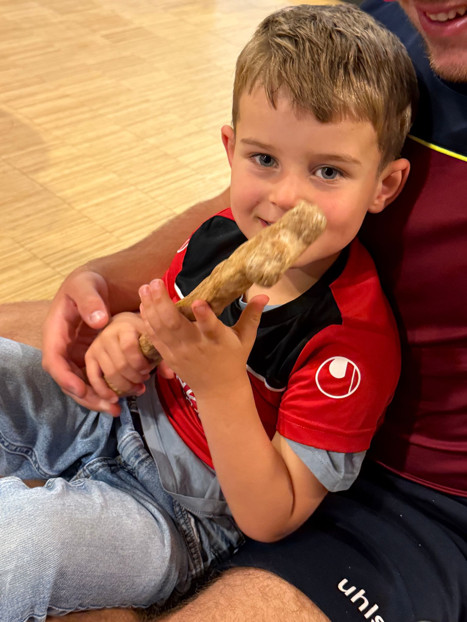 🌞 Vanochtend, na het eten van fruit 🍎🍌, kregen we bezoek van avonturier Raf 🧭! Hij vertelde een spannend verhaal over dinosaurussen 🦖🦕. Daarna gingen we samen op zoek naar het vermiste bottenhoofd van een dino 🔍💀.