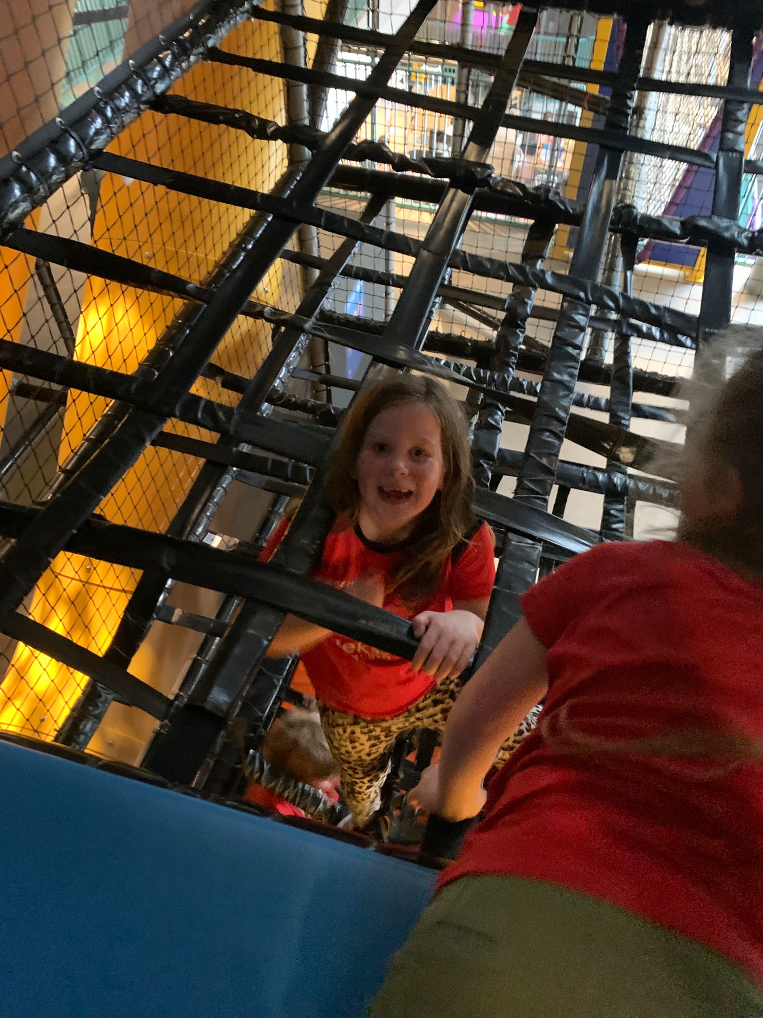 Toen we aankwamen, stonden de kinderen al te popelen om naar binnen te gaan 🤩. Binnen bij Kabonk was er zóveel te doen: klimmen 🧗, klauteren 🤸, springen 🦘 en natuurlijk heel veel spelen 🛝.