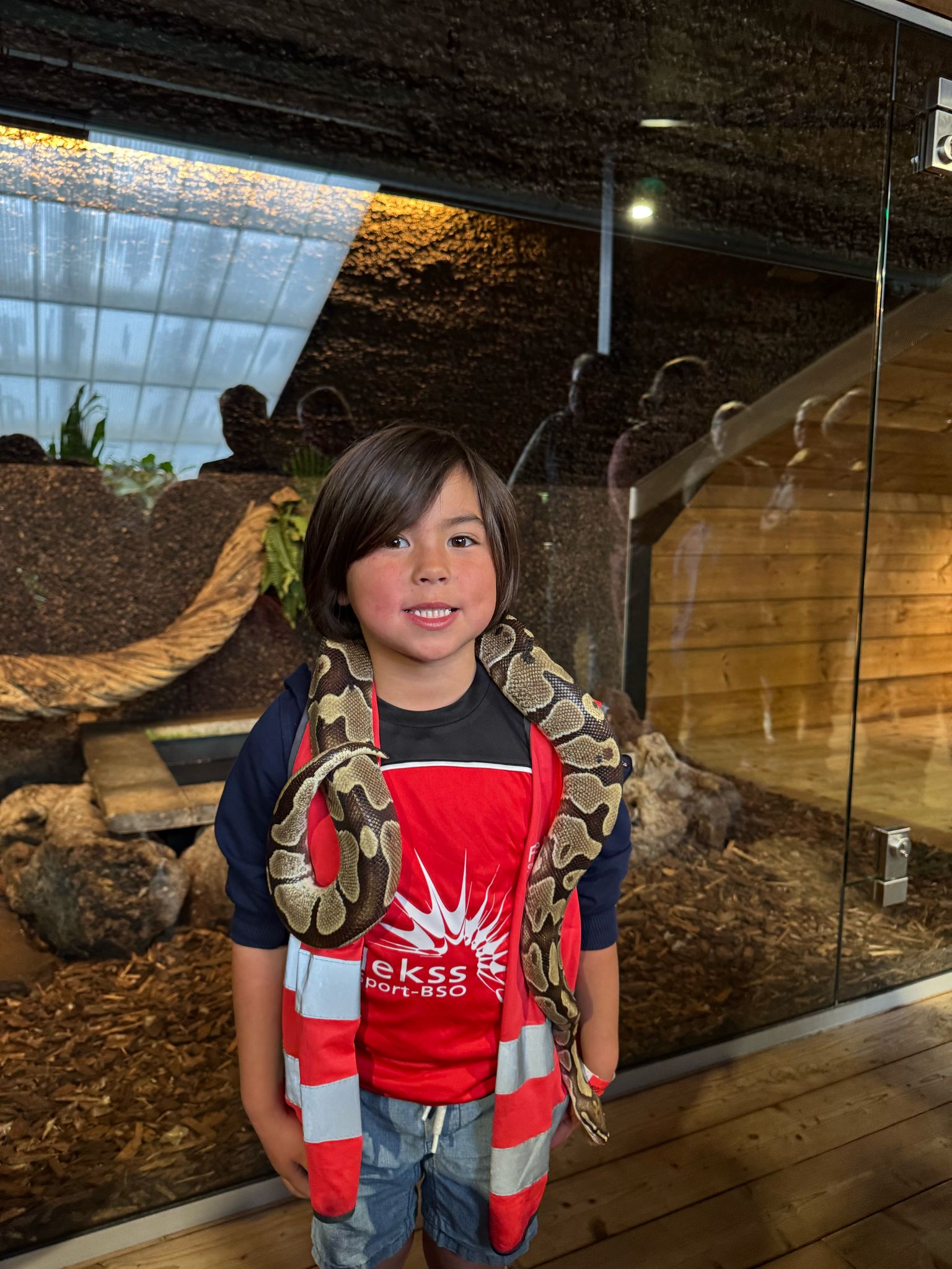Wat een spannende dag vandaag! In de ochtend zijn we met z’n allen naar een reptielenhuis geweest 🐢. Daar maakten de kinderen kennis met allerlei bijzondere reptielen – van wandelende takken tot een echte koningspython! En wie durfde, mocht zelfs zo’n slang om zijn of haar nek houden… wat een ervaring! 🐍
