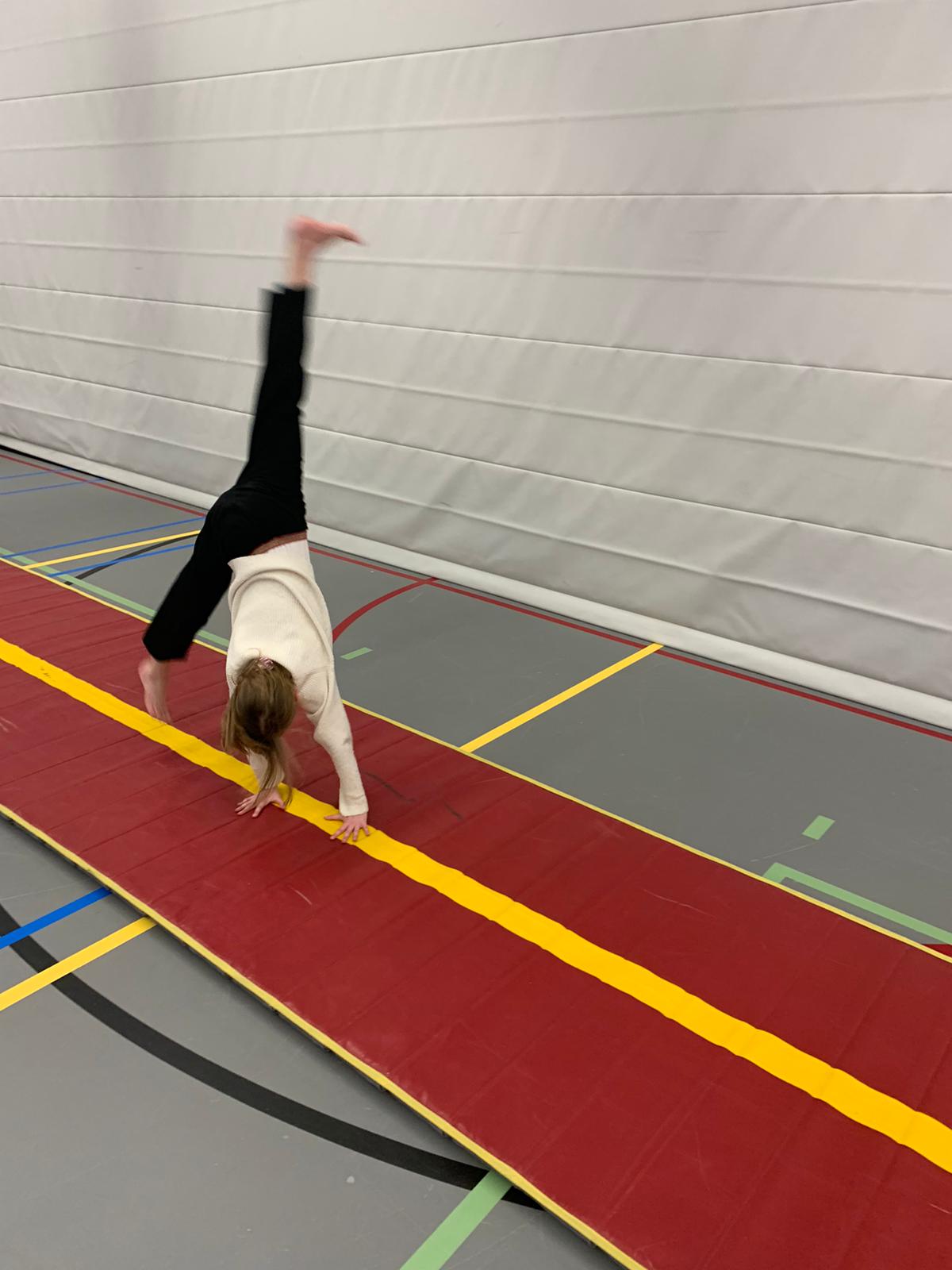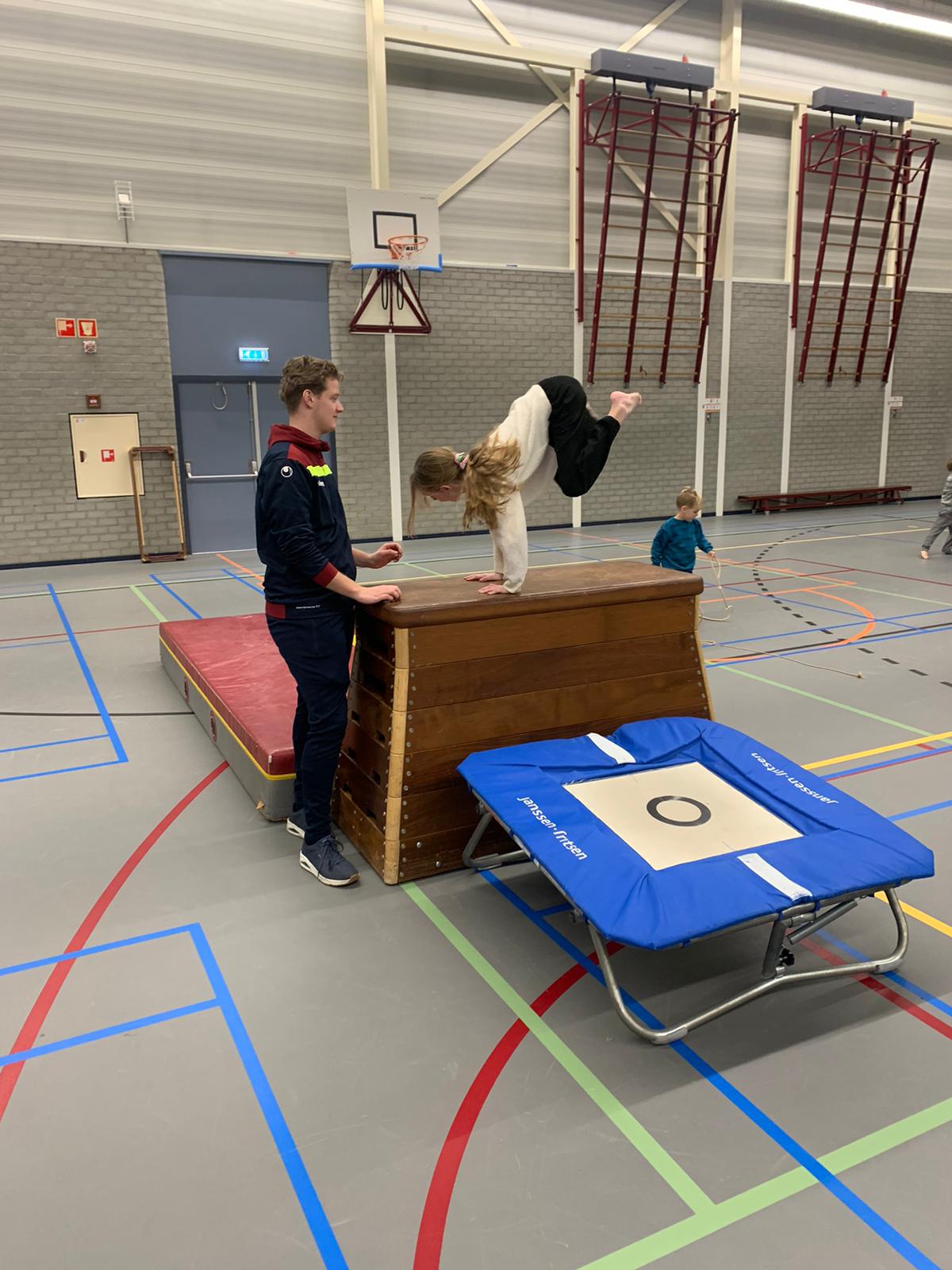 We hebben een groot parcours in de zaal opgezet, met onderdelen zoals ringzwaaien, kastsprong met trampoline, turntrucjes, touwtje springen en voetbal. ⚽ De kinderen mochten “vrij” spelen in het parcours en zelf bepalen wat ze gingen doen. Ze hebben het enorm naar hun zin gehad en vonden het erg leuk, dus dit gaan we zeker vaker in de planning opnemen!
