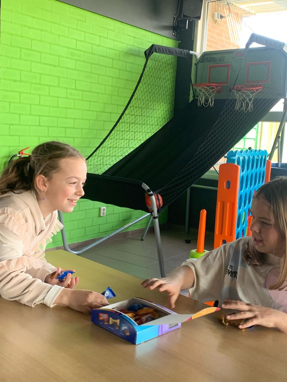 Dinsdag was het een feestje! We hadden een studiedag en hebben volop genoten. We speelden gezellig bij Monkey Town en aten heerlijke frietjes 🍟. In de gymzaal speelden we levend airhockey en zwaaiden we met touwen. Wat een feestelijke dag! 🤩