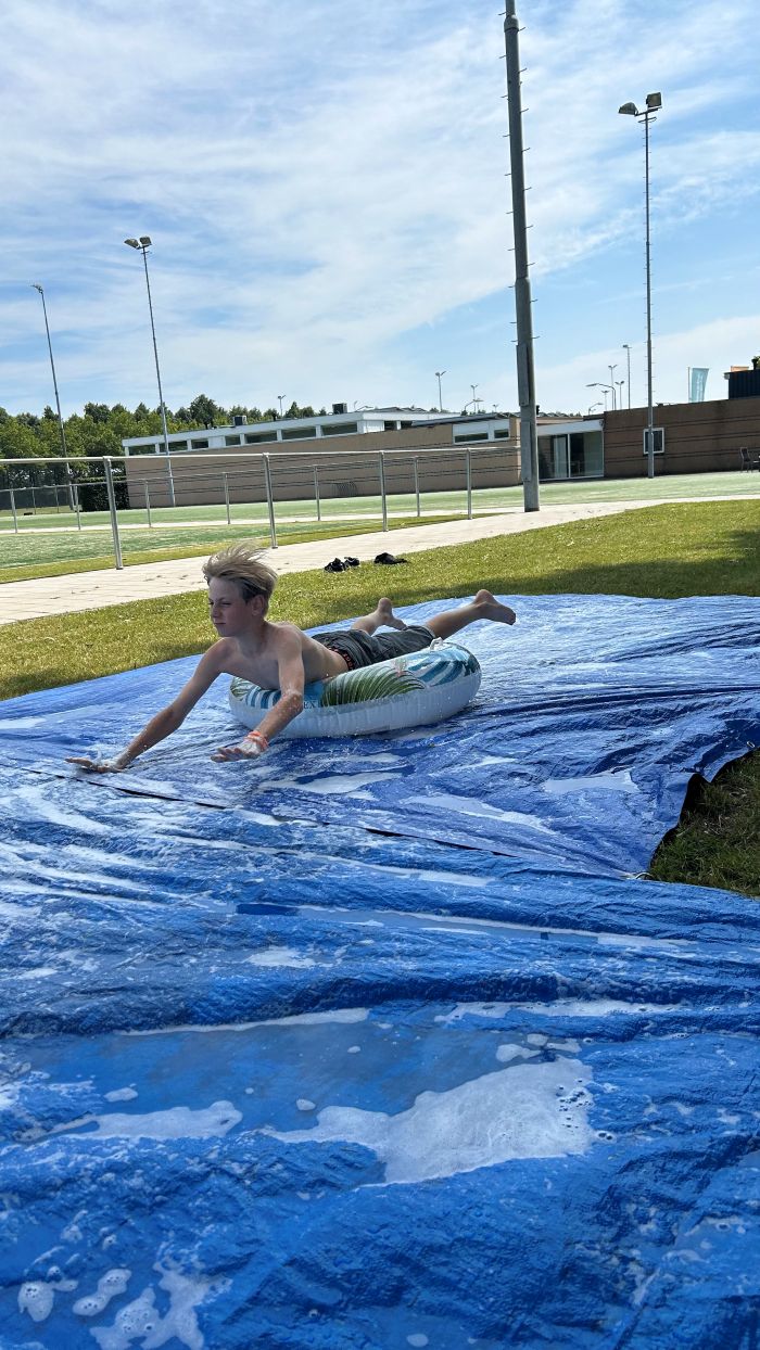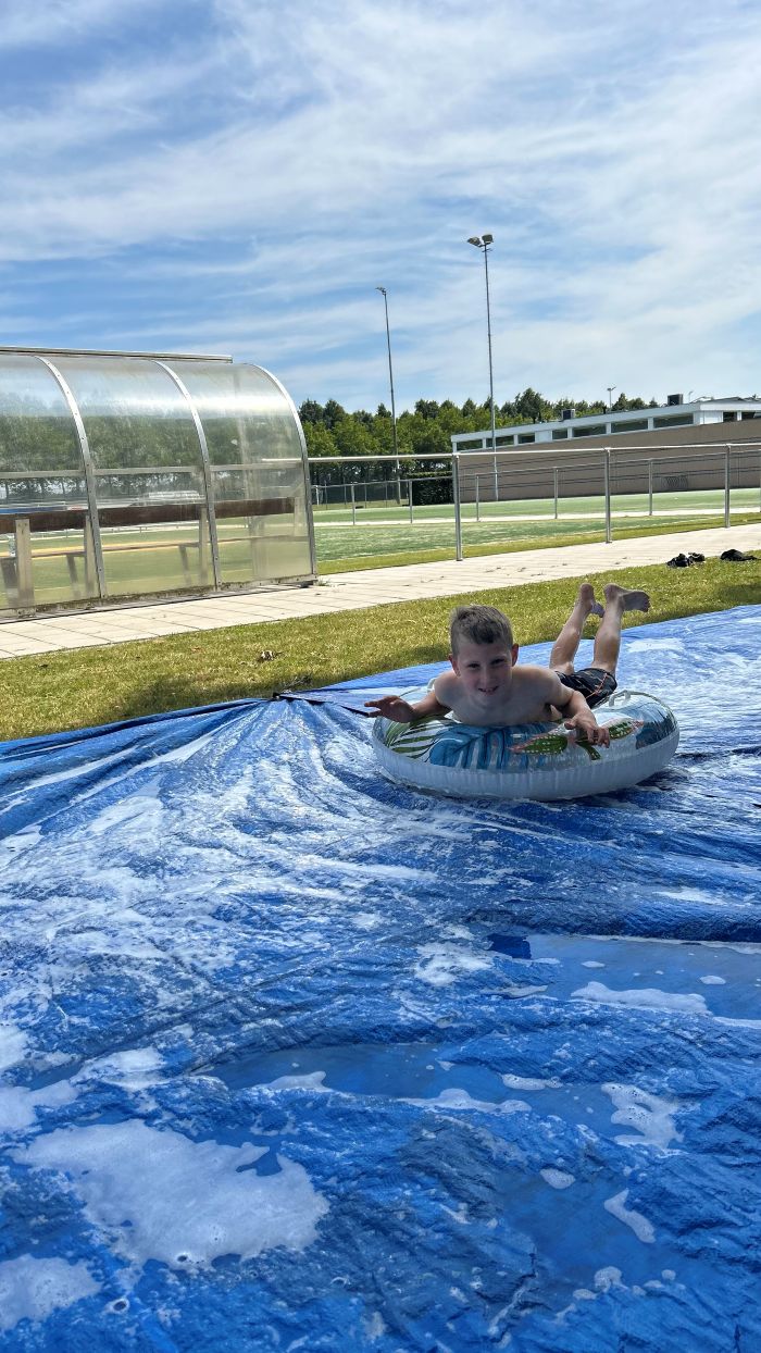 Onze kinderen stonden te stralen bij het onderdeel bubbelvoetbal 🫧. Ze doken in grote bubbels, rolden over het gras en gierden van het lachen. De zon scheen fel ☀️, dus sloten we af bij de waterpomp waar waterspelletjes voor verkoeling zorgden 💦.
