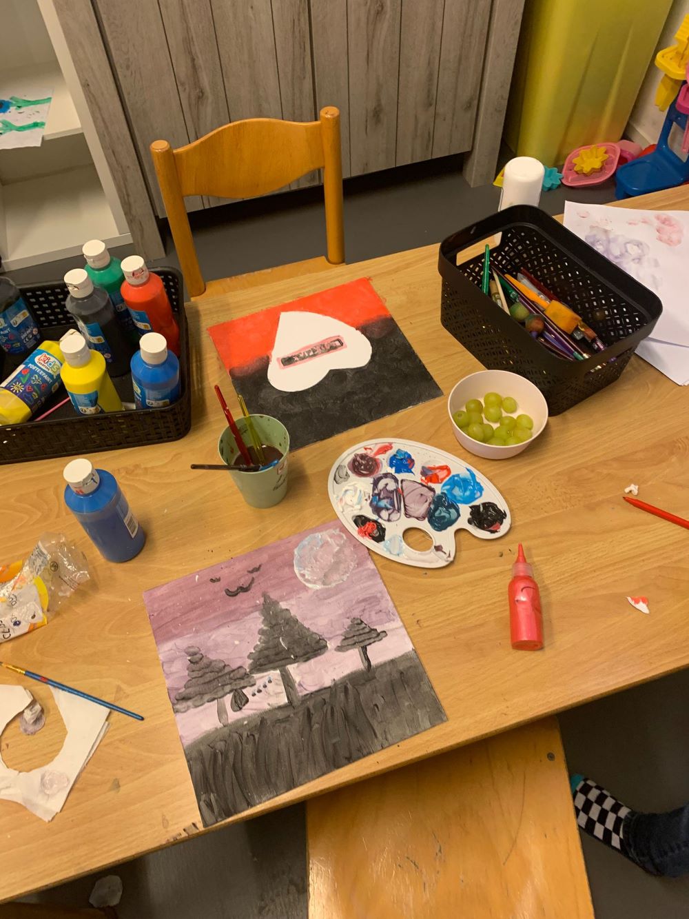 In de middag hebben we de groep in 2e verdeeld hier ging de 1e groep knutselen en verven en ging de 2e groep vrijspelen.