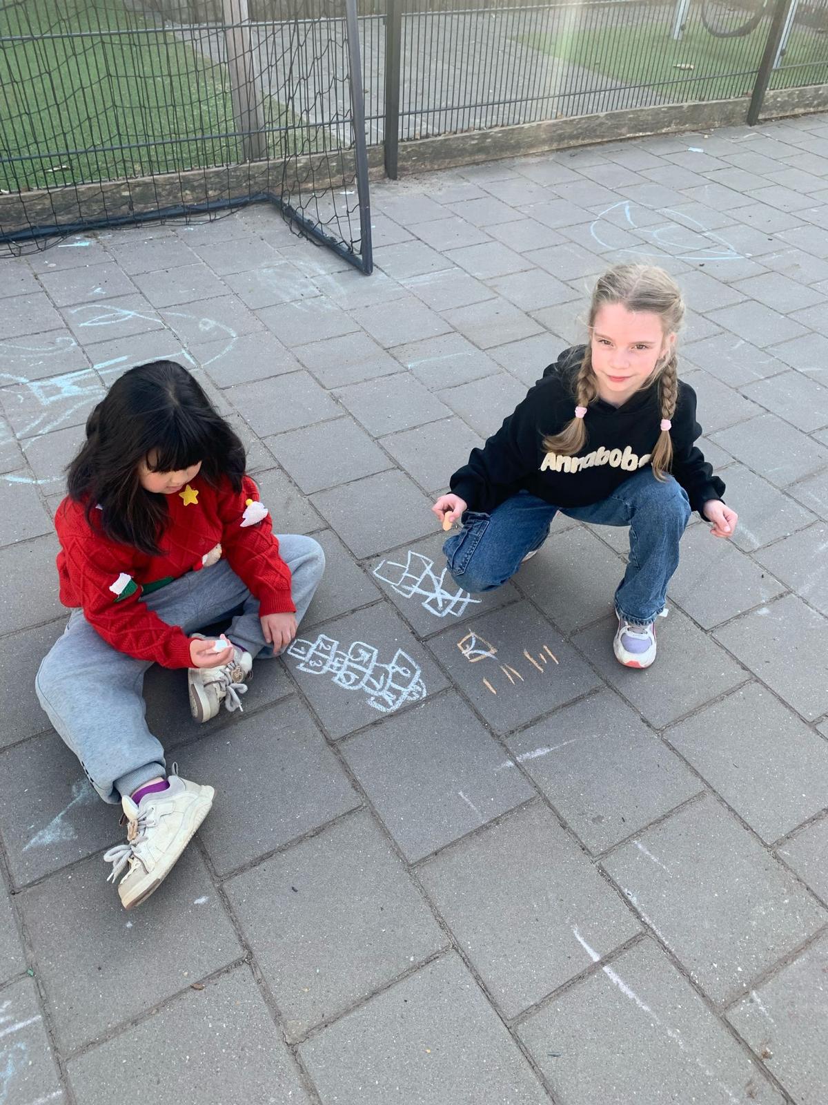Een gezellige middag op de sport-BSO. Vanmiddag begon onze middag op de sport-BSO met een lekkere lunch. Samen aan tafel genoten we van vers brood met beleg naar keuze. Terwijl we aten, kletsten we gezellig over onze dag en wat we straks zouden gaan doen. 🥖Na het eten was het tijd om even te ontspannen. We keken een leuke film en genoten van het rustige moment. 📽 Toen de film afgelopen was, pakten we allemaal potloden en papier om lekker te tekenen. Iedereen maakte mooie kunstwerken, van fantasiedieren tot kleurrijke huizen.Na het tekenen kregen we een lekker stuk fruit. 🍇 Met nieuwe energie gingen we daarna sporten! We begonnen met een potje voetbal, waarbij iedereen enthousiast achter de bal aan rende en prachtige doelpunten maakte. Daarna oefenden we ons evenwicht tijdens een uitdagende balanceeropdracht.