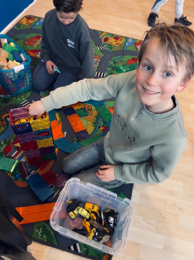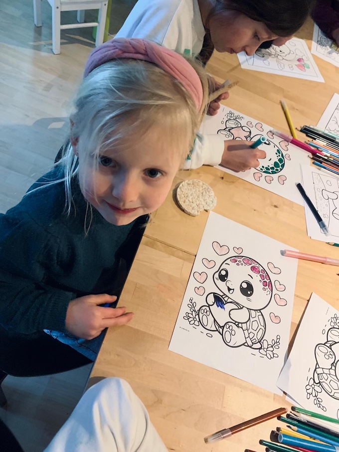 … na zoveel spelletjes en een sportief uur was het tijd voor een beetje rust.. dus eenmaal op de bso gingen wij de film Shrek kijken💚, kleurplaten inkleuren🖍️, lego torens bouwen & spelen met de magnetische autobaan