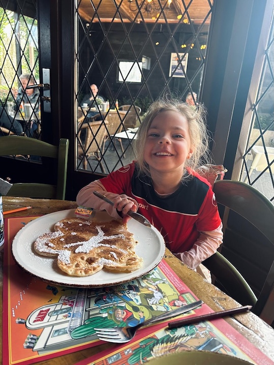 Naar al dat spelen kregen de kinderen toch wel honger, dus hebben wij allemaal een heeeerlijke pannenkoek op als lunch.😋