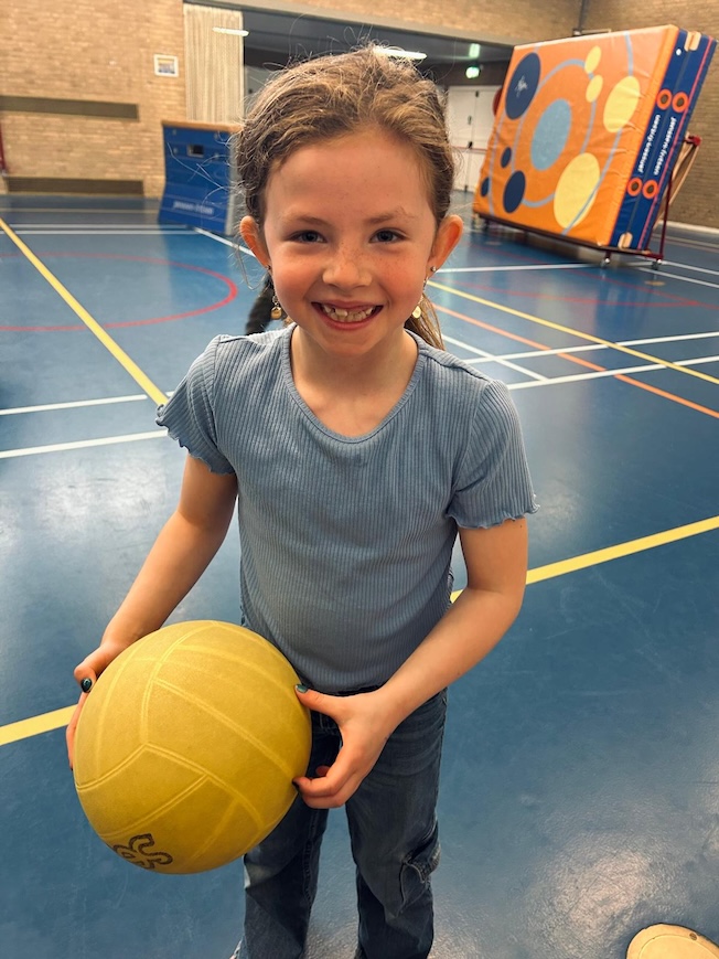 In de gymzaal hebben we een groot trefbalspel gespeeld, maar het was geen gewone trefbal, het was namelijk superkrachten-trefbal! 🦸♀️ Alle kinderen kregen een lintje met een bepaalde superkracht, wat ze echt geweldig vonden om te doen! 🤩