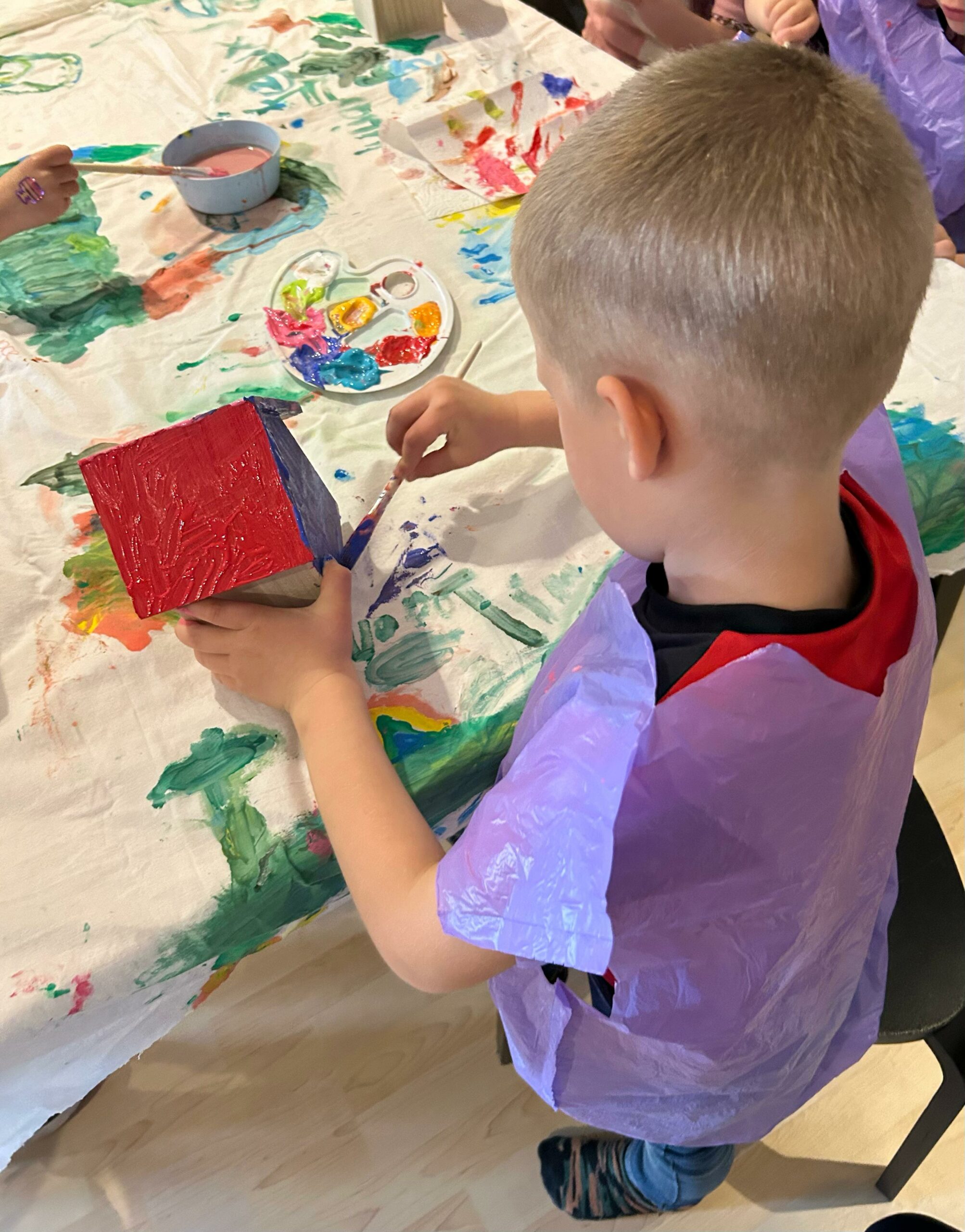 De laatste dag van de eerste vakantieweek was alweer aangebroken. Vrijdag hadden we een volle planning. In de ochtend hebben we onze eigen vogelhuisjes versierd. 🐥🏠 Eerst werden ze geverfd, daarna beplakt met stickers en versierd met kleur. 🎨