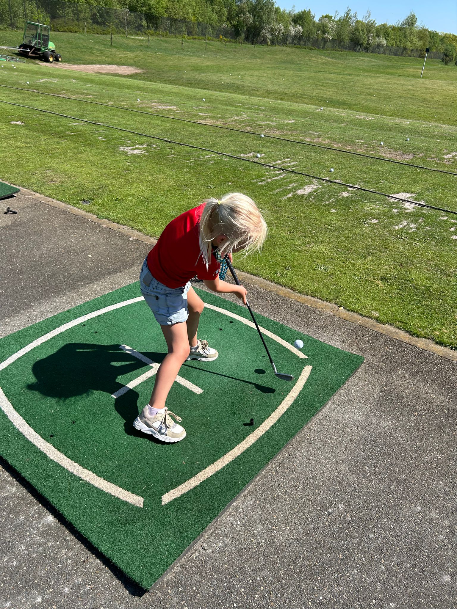 We begonnen met een warming-upspelletje 🥵, waarna de groep werd opgesplitst: de ene groep ging afslaan, de andere groep oefenen met putten. 🏌️♂️⛳️