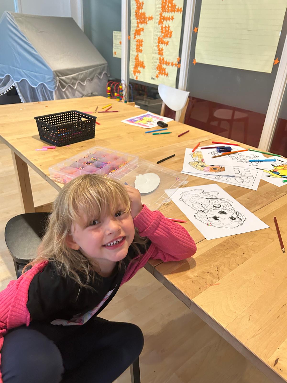 Dus jassen weer uit en lekker binnen gebleven! Gelukkig weten we ook daar de gezelligheid te vinden: tekenen, loombandjes maken, knutselen, spelen met autootjes en magneetjes – alles kwam uit de kasten! 🚗🖍️🎨