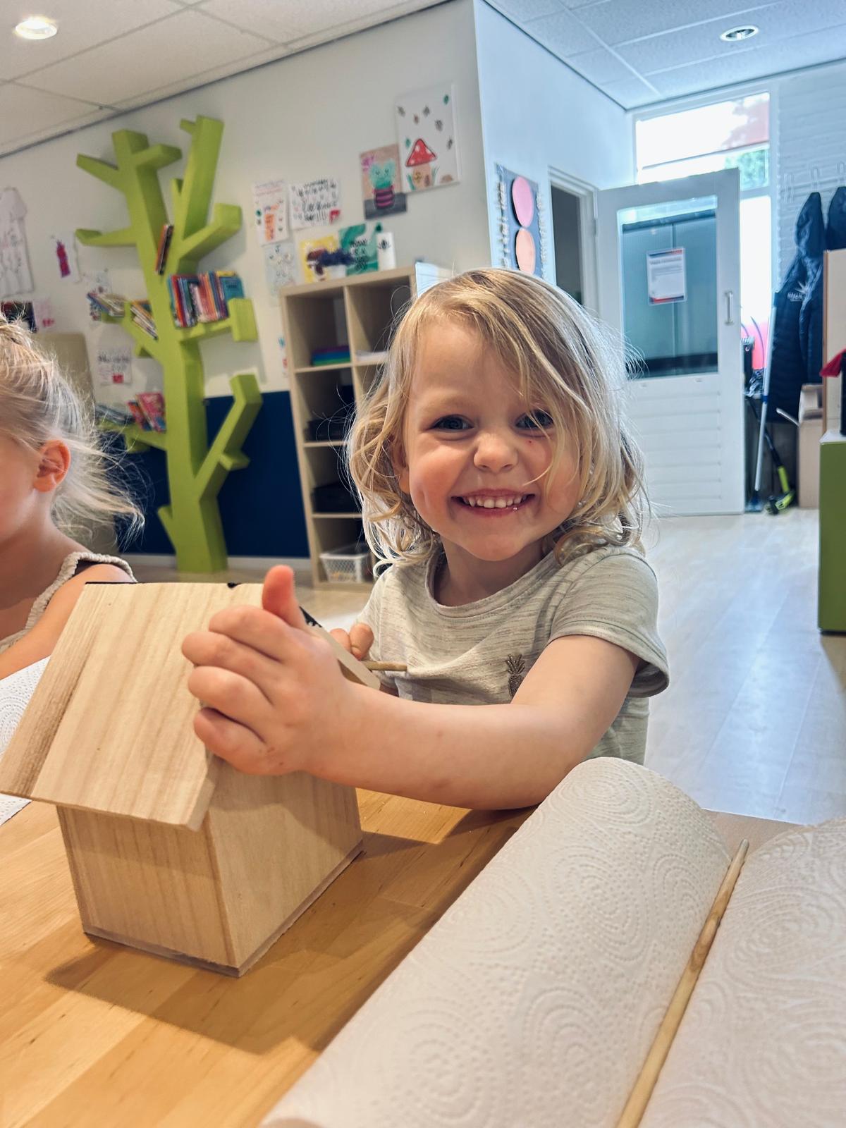 ’s Middags hebben we samen vogelhuisjes geschilderd – echte kunstwerkjes zijn het geworden!