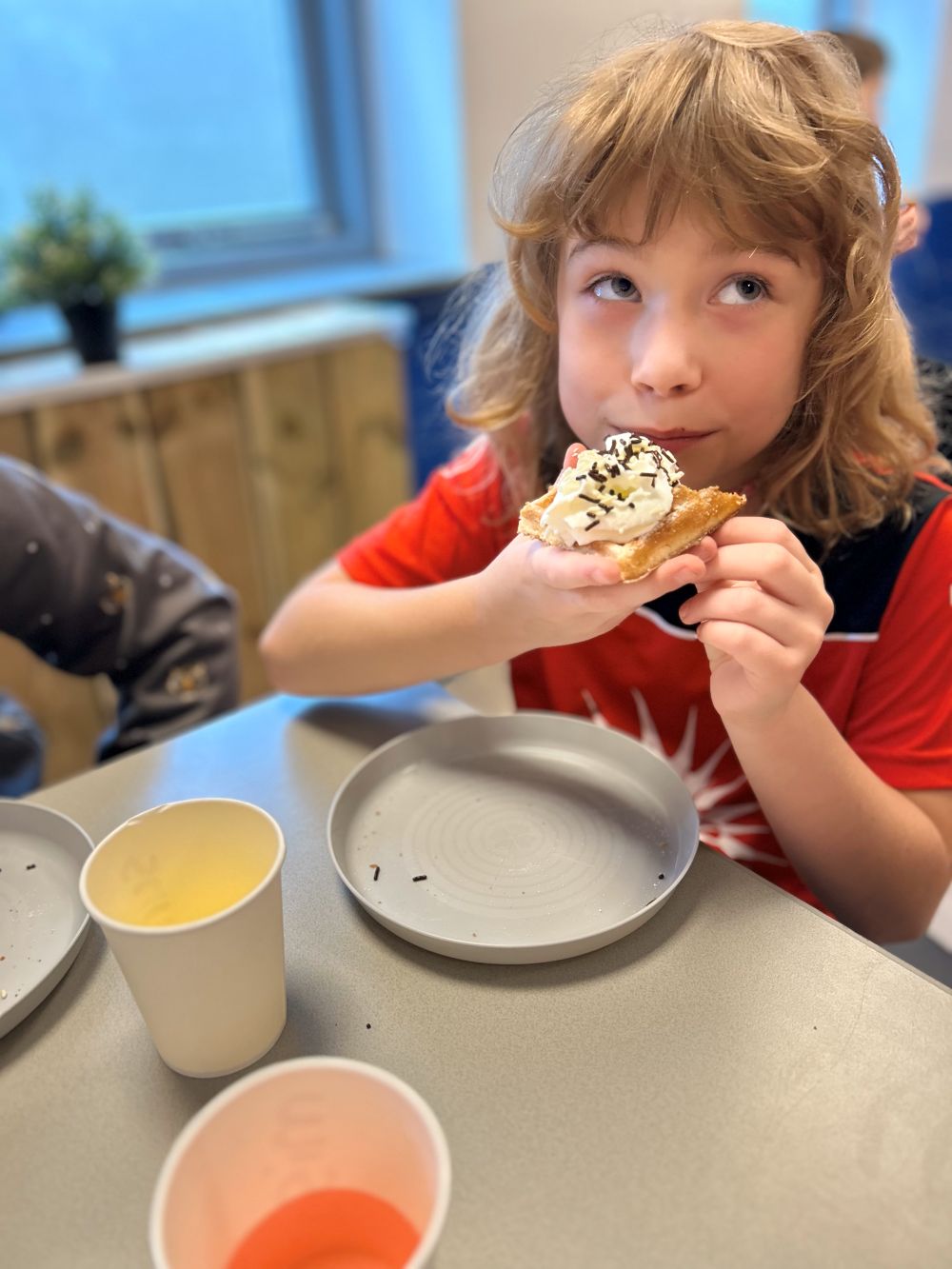 Er brak alweer de laatste dag van deze topweek aan, voordat iedereen van een fijn weekend en Koningsdag kon gaan genieten. Vrijdagochtend begonnen we feestelijk: de kinderen mochten zelf wafels en eierkoeken versieren – en natuurlijk lekker opeten! In de middag sloten we af in de gamehall, waar iedereen zich helemaal kon uitleven met allerlei spelletjes.