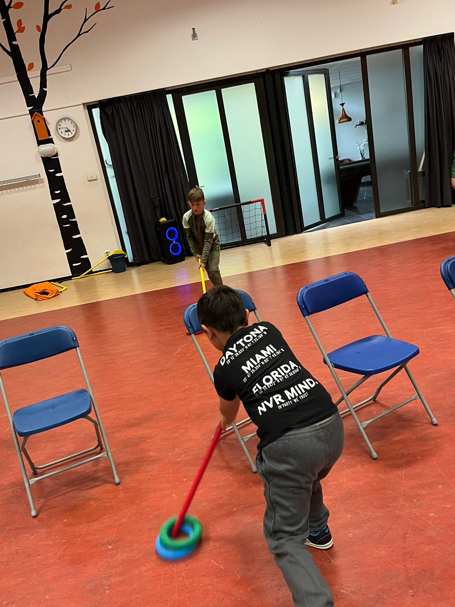 De tweede dag van de week was het helaas iets minder weer ☁️, waardoor buitenspelen niet ging. Gelukkig hadden de kinderen daar een creatieve oplossing voor bedacht 🎨🧠! Sommige kinderen zijn sieraden gaan maken 📿, anderen hebben mooie tekeningen gemaakt 🖍️🖼️, en er zijn zelfs huisjes van karton en lijm gemaakt 🏠✂️. In de gymzaal hebben we deze middag ringhockey 🏑 en pionnenroof gespeeld 🎯. Zo konden de kinderen toch nog hun energie kwijt! ⚡