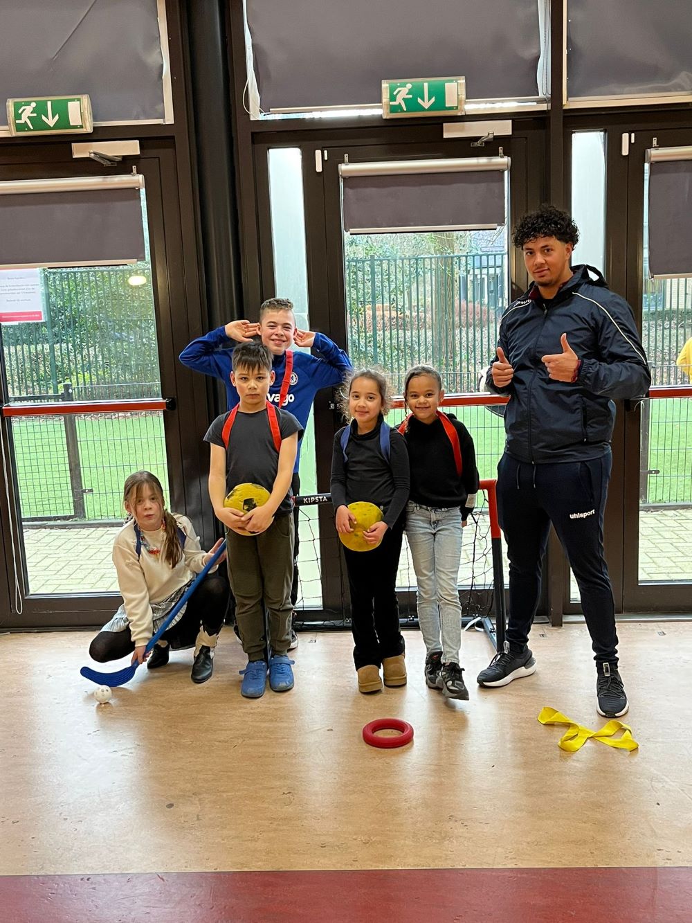 In de gymzaal vroegen de kinderen om allerlei verschillende sporten. Hiervoor was dus maar een passende oplossing: Allesbal! Hierbij kwamen ringhockey, handbal, voetbal, en normaal hockey. ⛹️🤾🏑