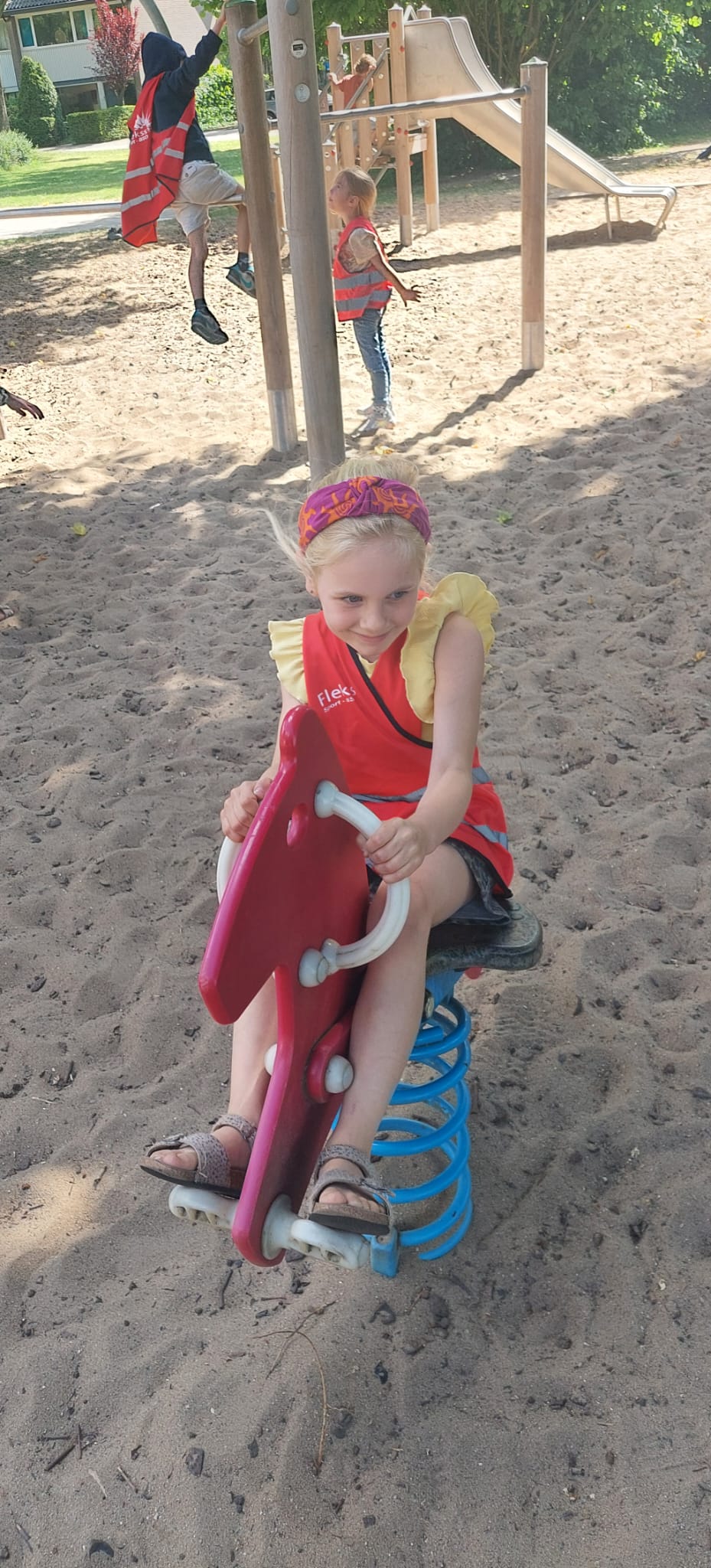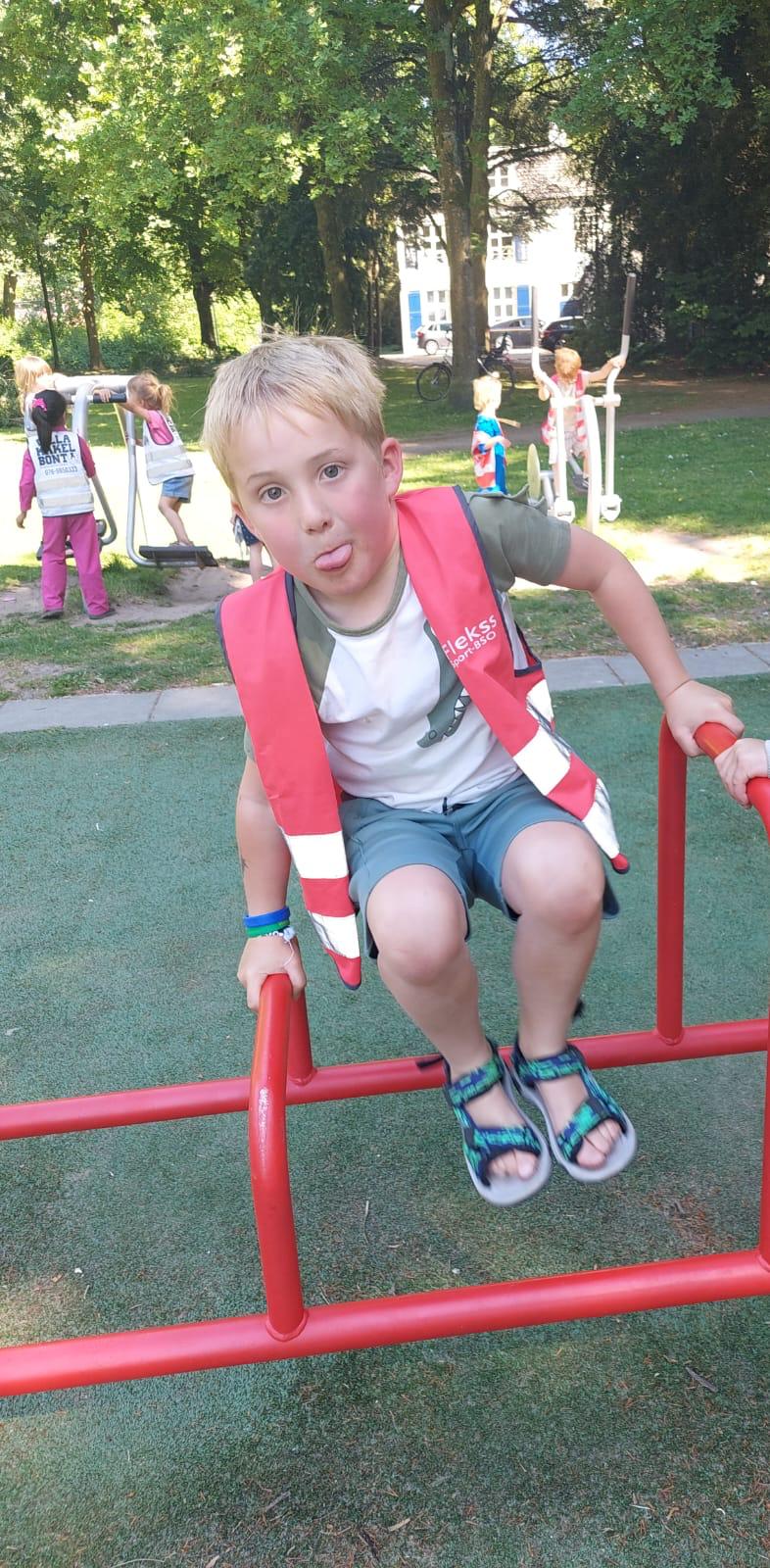 De laatste dag van deze sportieve week, bezochten we de kleine speeltuin. Veel kinderen waren duidelijk moe van het wandelen, en dat begrepen we natuurlijk helemaal. Vrij spelen in een rustige omgeving was precies wat ze nodig hadden. Even niets hoeven, gewoon genieten van de laatste schooldag van de week.