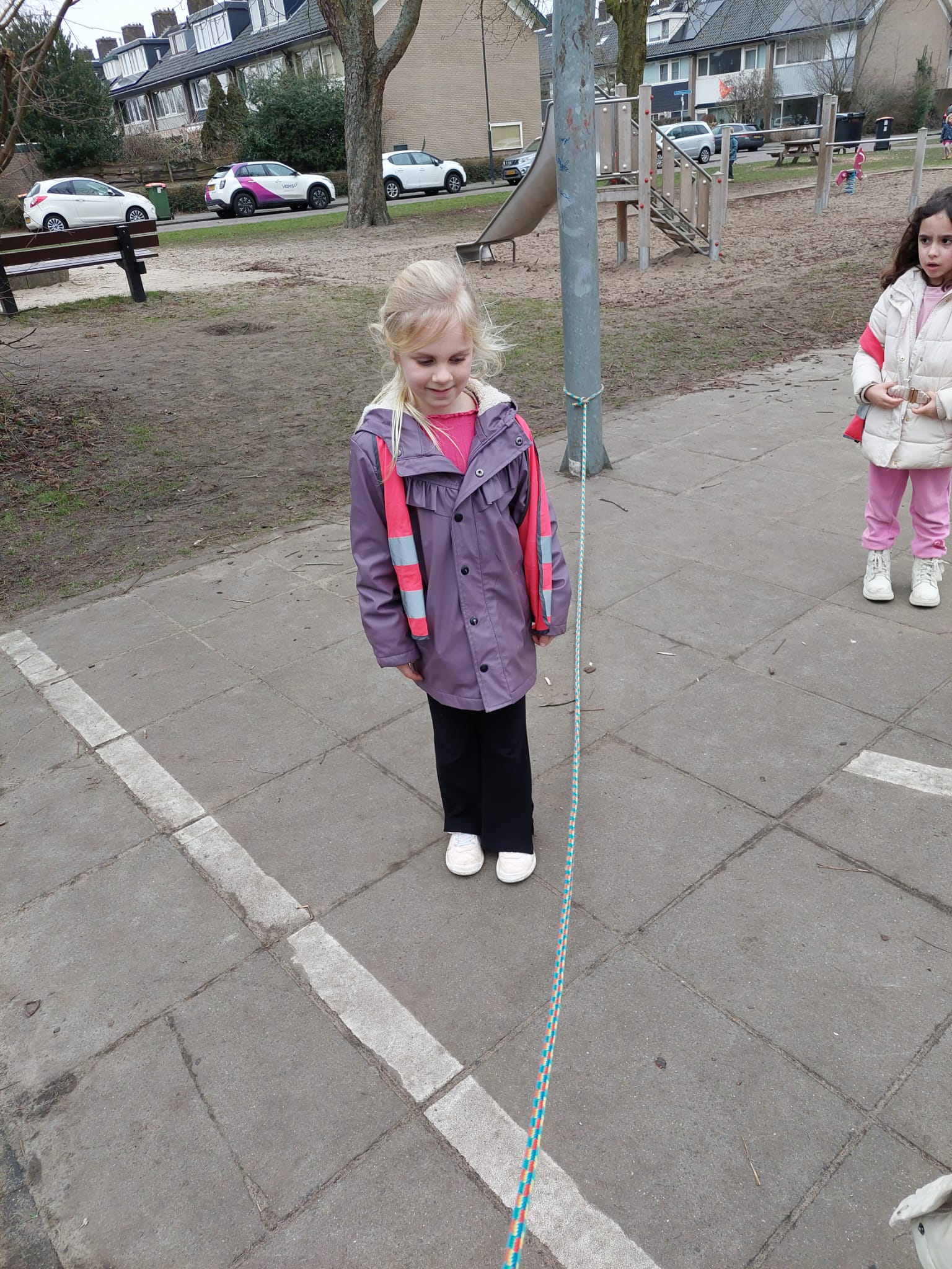 Wat een heerlijk weer vandaag! We besloten daarom om naar de speeltuin te gaan. Daar speelden we samen met juf Jamila in de zandbak en bouwden we mooie zandkastelen. Juf Sarah had het springtouw meegenomen en we deden allerlei leuke touwspring-oefeningen. Ondertussen werd er met meester Glenn en Mark een fanatiek potje gevoetbald. Iedereen genoot van het buiten spelen en het mooie weer.