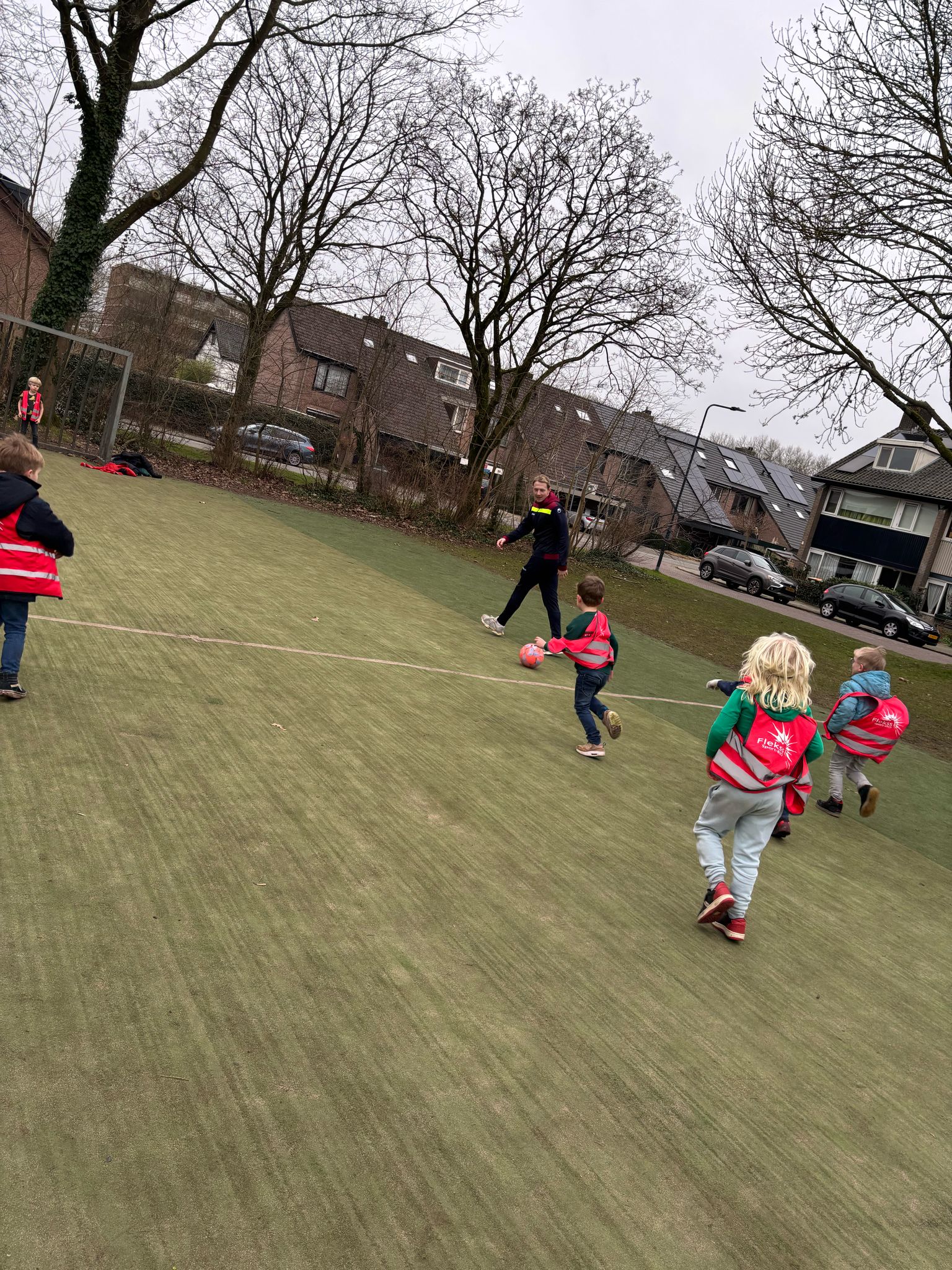 De week begon zonnig met buitenspelen, voetbal en zandbakplezier ☀️⚽. Dinsdag stonden uitdagende gymspellen op het programma, zoals pionnenvoetbal, haaien en hoepelbasketbal 🏀. Donderdag genoten de kinderen van de speeltuin, touwspringen en voetbal🌳.