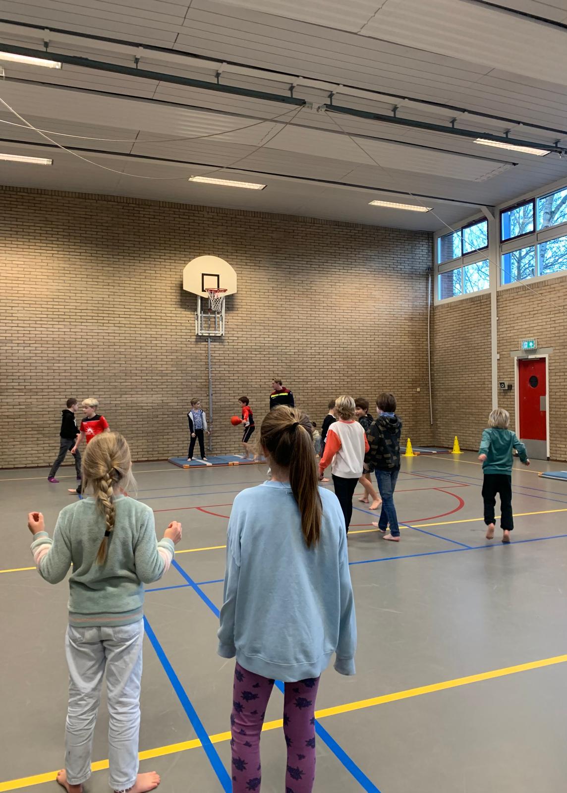 De gymzaal was vandaag opnieuw het toneel van een sportieve activiteit. Dit keer speelden we Speedy Gonzalez, een spel waarin snelheid en ontwijken centraal staan. De kinderen vormden tweetallen: één speler legde een parcours af terwijl de ander de ballen van het veld probeerde te ontwijken. Het enthousiasme was groot, en iedereen wilde het spel vaker spelen. Een succesvolle afsluiting van een actieve week!