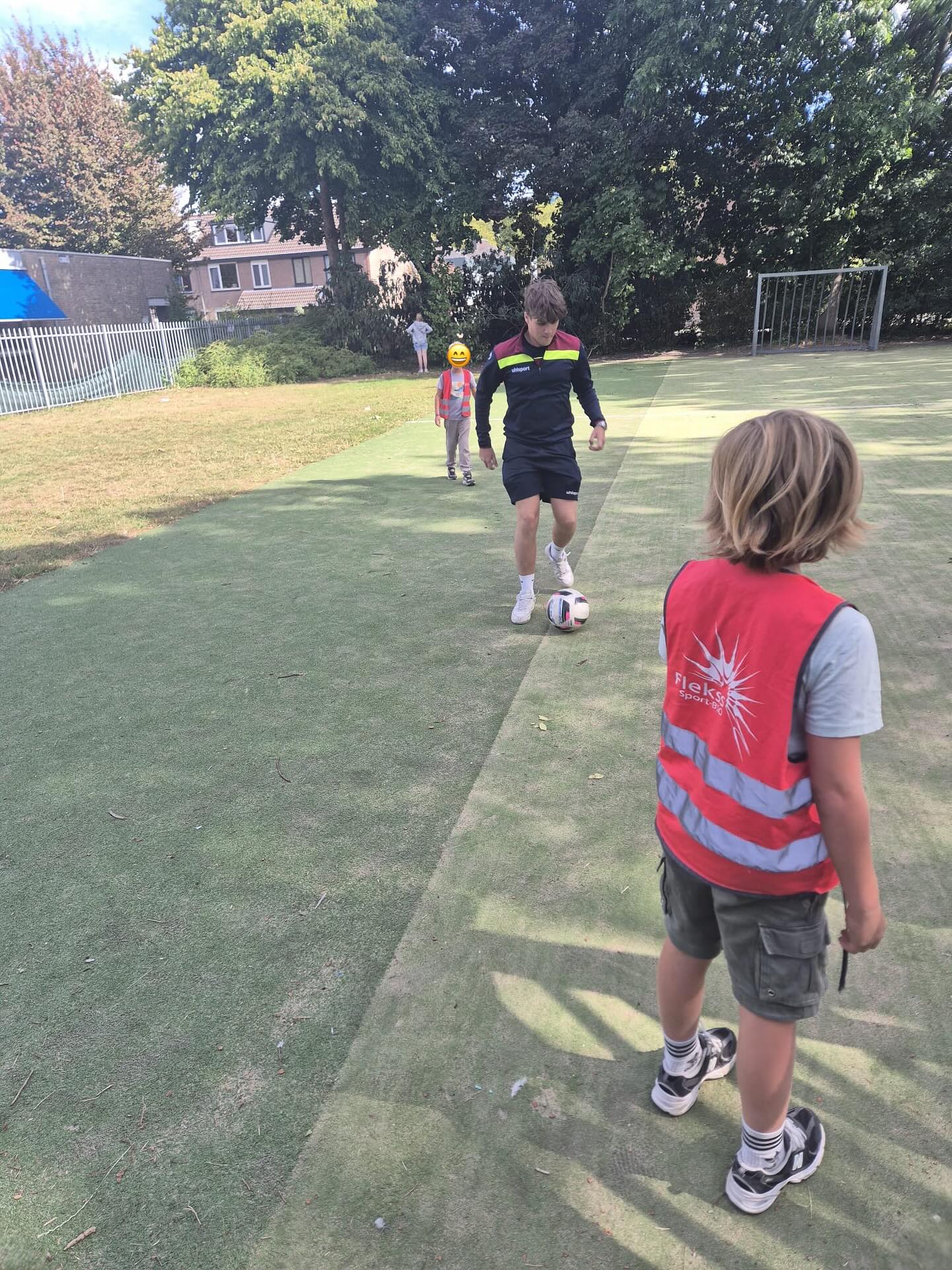 Vandaag liep Meester Lorenzo 👨🏫 een dagje mee. We vertrokken samen naar het sportparkje om Levend Stratego ⚔️ te spelen. De kinderen deden fanatiek mee en genoten zichtbaar. Na afloop was er nog tijd om vrij te spelen of een potje te voetballen ⚽. Natuurlijk vroegen de kinderen enthousiast of meester Lorenzo ook mee wilde doen — en dat liet hij zich niet twee keer zeggen! 😄