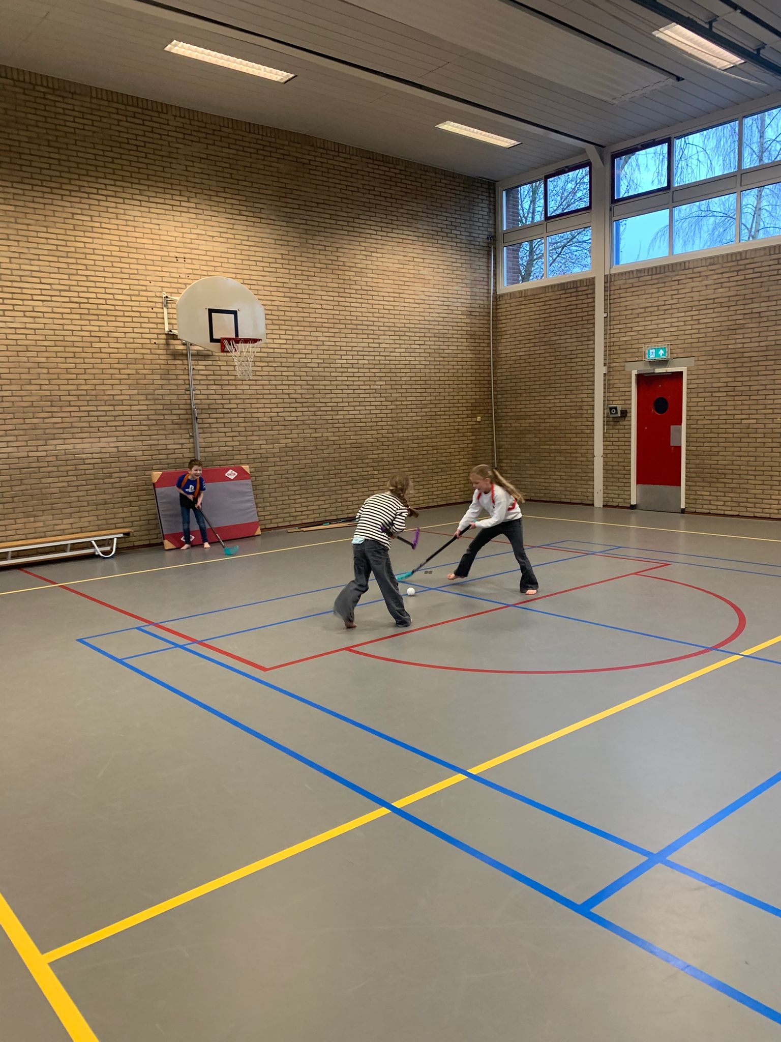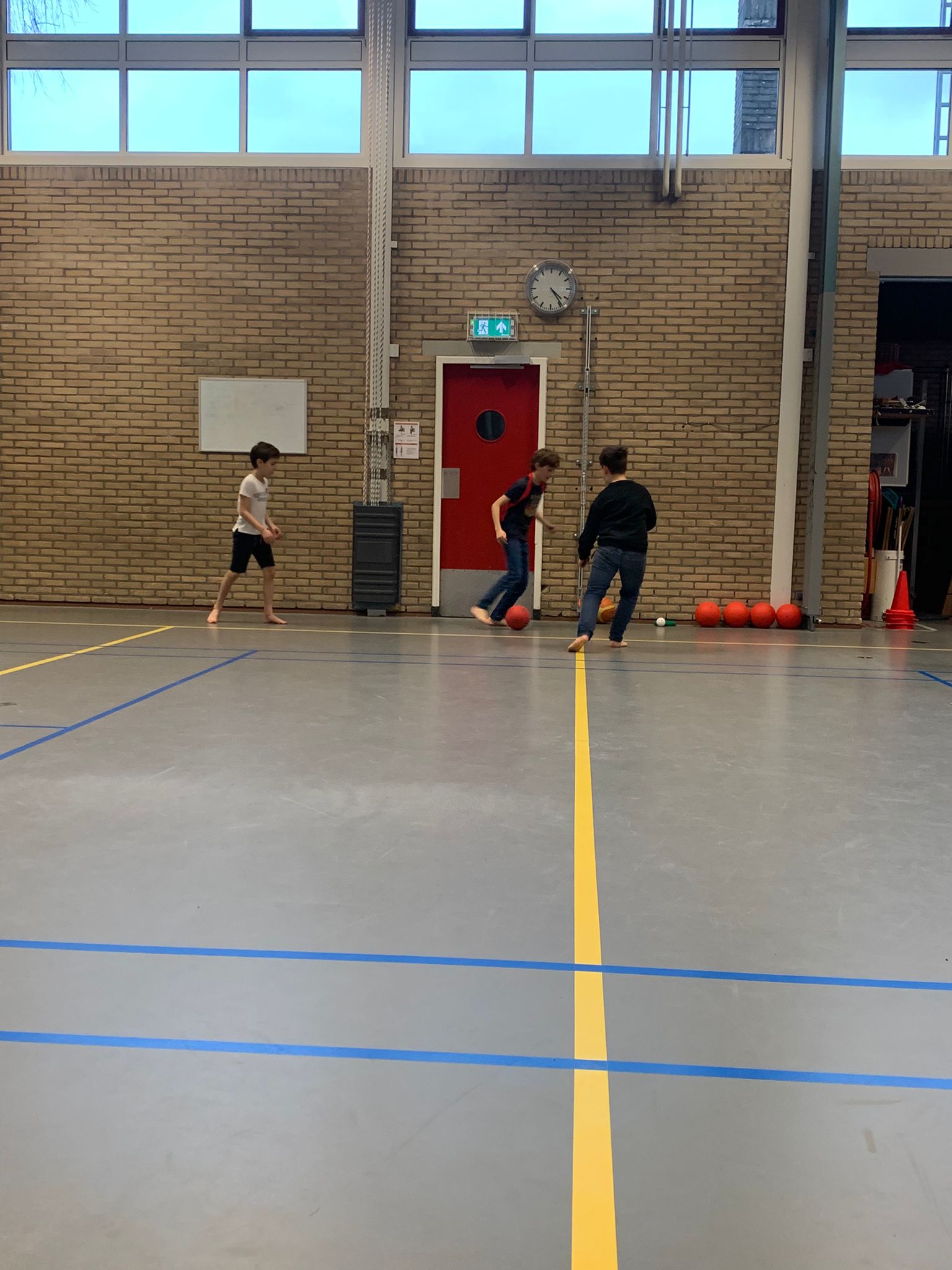 Ook vandaag waren er veel afwezigen vanwege ziekte, maar dat hield ons niet tegen om een sportieve dag te beleven! We vertrokken met een kleinere groep naar de gymzaal. Op verzoek van de meiden speelden we Allesbal! Dit dynamische spel combineert verschillende balsporten, wat zorgt voor veel afwisseling en uitdaging. We speelden onder andere voetbal, basketbal, unihockey, ringhockey en trefbal. Iedereen was enthousiast en deed actief mee. De energie en het fanatisme spatten ervan af, wat resulteerde in een superleuke sportmiddag!