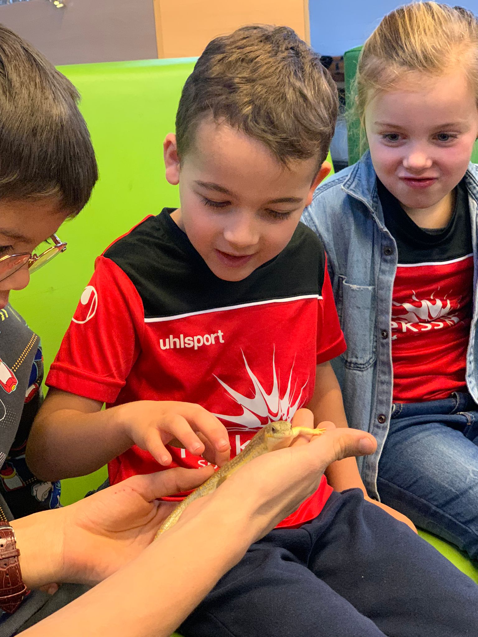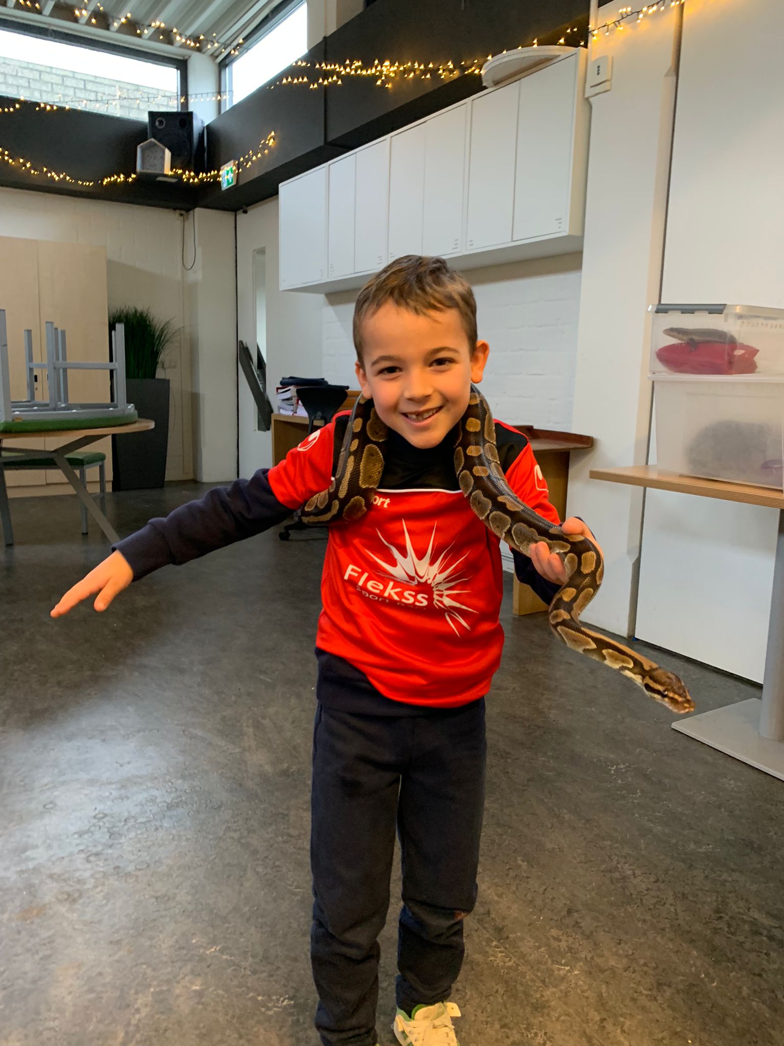 Vandaag hebben we heel stoere dingen gedaan met echte dieren, sommige kinderen hadden er eentje om hun nek. Het was super spannend maar wel super gaaf! Kijk maar naar de foto’s! 🐍 Verder hebben we heerlijk met elkaar gespeeld en gepraat over welke dieren we hebben gezien vandaag. 😄