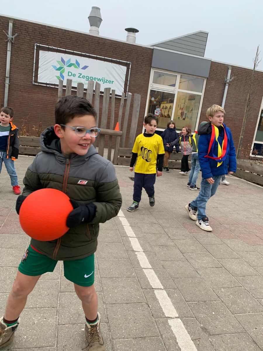 Vandaag hebben we veel buiten gespeeld. Bij de Zeggewijzer hebben we gelukkig een groot schoolplein waar de kinderen zich heerlijk kunnen vermaken. Op donderdag werken we altijd in twee groepen: de kleuters en groep 3 t/m 8. Dit doen we om te voorkomen dat het te druk wordt in het lokaal en omdat dit voor de kleintjes prettiger is.