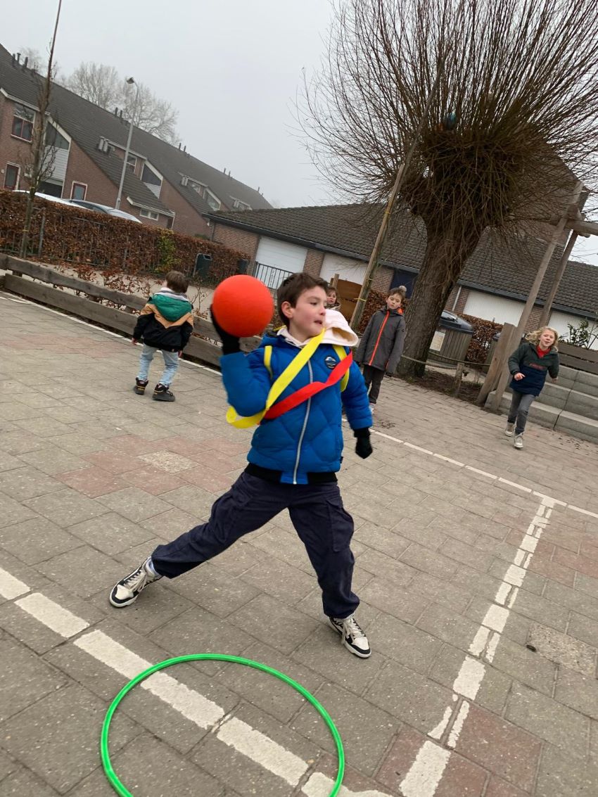 Tijdens het sportuurtje hebben de kleuters in de gymzaal het bommenspel en trefbal gespeeld. Met de oudere kinderen hebben we buiten pionnentrefbal gedaan. Daarna werden al veel kinderen opgehaald en hebben we de dag binnen afgesloten. 💣