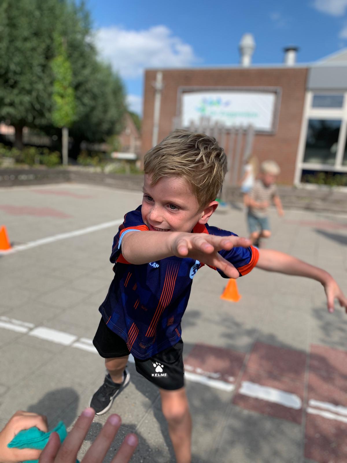 In de middag hebben we de groepen gesplitst. De oudere kinderen speelden een fanatiek potje trefbal 🎯, waarbij goed gegooid en snel gerend werd 🏃. Ondertussen deden de jongere kinderen het spel Anne Maria Koekoek 🙈. Er werd heel wat afgelachen bij het stilstaan en weer wegrennen 😂.