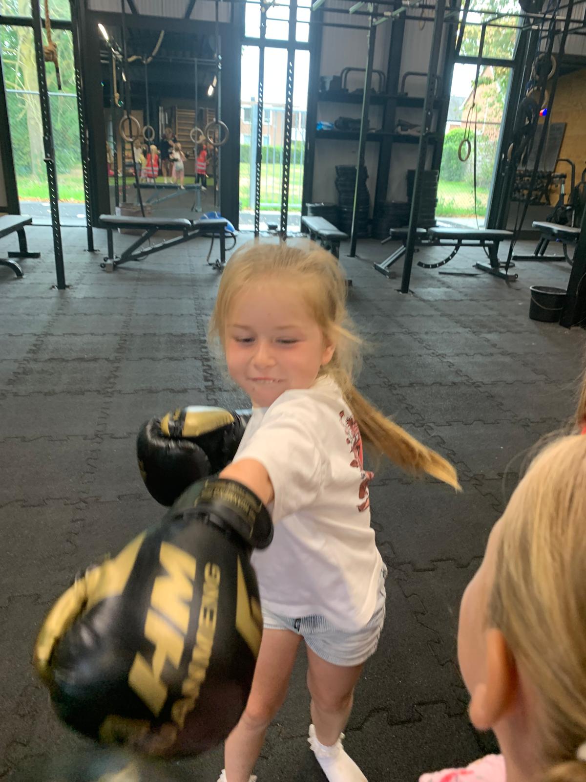 Tijdens de eerste les leerden de kinderen de basisstoten en maakten ze kennis met verschillende traptechnieken 👊🦵. Leuk om te zien was dat ook onze kleinste strijders fanatiek meededen 💪🤗.