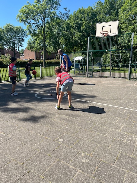 Vandaag stond in het teken van waterpret! 💧 De kinderen mochten kiezen: meedoen met de wateractiviteiten of vrij spelen. Een groepje koos voor basketbal in de voetbalkooi, waar toevallig een volwassen man aan het trainen was. Hij besloot spontaan een partijtje met de kinderen mee te doen 🤝 – superleuk! Daarna werd er nog gevoetbald en zelfs met een basketbal op de pingpongtafel 🏓 gespeeld.